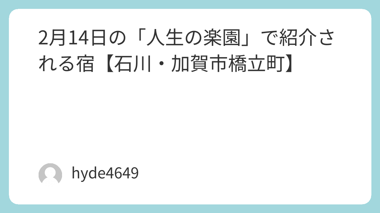 2月14日放送の「人生の楽園」で